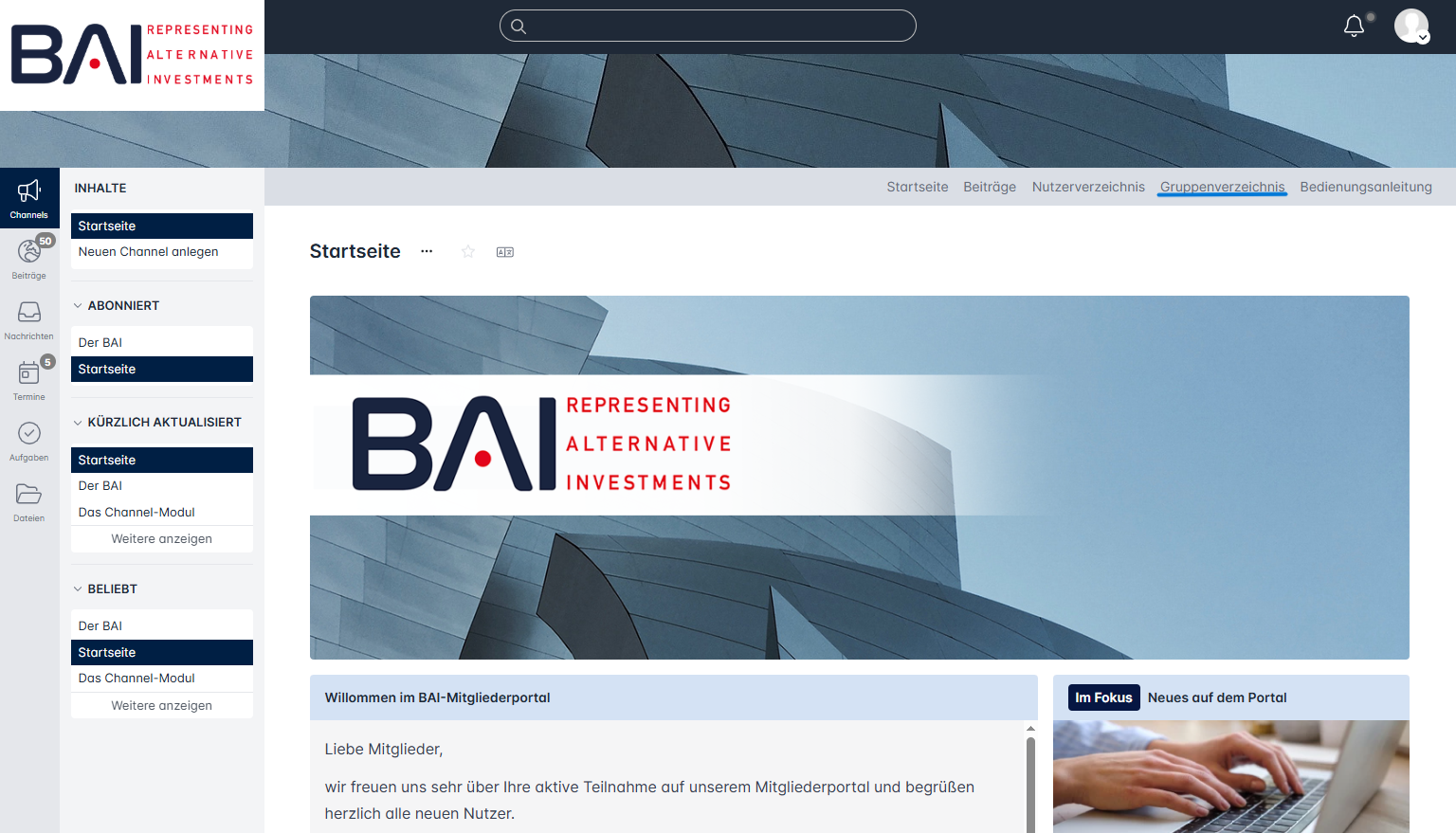 I. Wählen Sie dazu nach dem Login auf der Startseite des Mitgliederportals den Menüreiter "Gruppenverzeichnis" aus: