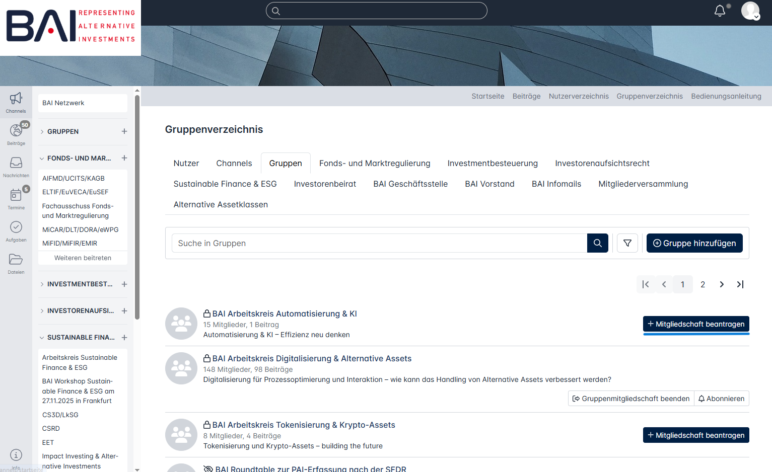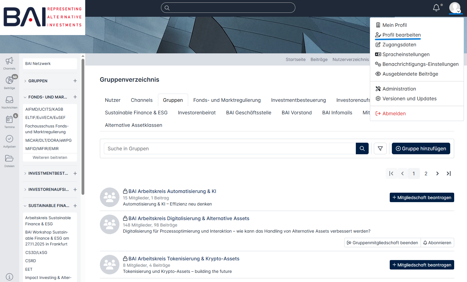 Eine der zentralen Möglichkeiten, die von Ihnen erhaltenen Informationen zu organisieren und mit anderen Mitgliedern in Kontakt zu treten, ist der Beitritt zu Gruppen und Fachausschüssen.